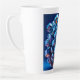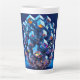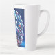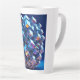 An abstract sculpture made of sparkling blue cubes covers this latte mug.