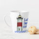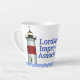 Mmmm, cheire e desfrute de um café no LIA LATTE MUG, com o logótipo colorido do farol da Associação de Melhoramento da Senhoria
