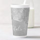 Personalize facilmente este metal escovado prateado e a glamourosa caneca latta com padrão de brilho com seu próprio nome personalizado.