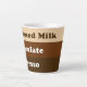 Amo os cafés do bebendo Mocha? Esta caneca também dobra como receita para o seu café favorito. Com letras retrógradas e listras coloridas de café ele tem um estilo divertido, perfeito para apreciar sua bebida favorita. Lê Mocha em caracteres castanhos ao lado com faixas de enrolamento rotuladas Espresso, Chocolate e Leite a vapor.