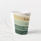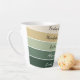 This mug design features a clean, vintage Saint Patrick’s Day palette arranged in smooth horizontal bands—from emerald at the base up to soft cream at the top. The colors create a fresh, trendy look: a dark green foundation, layered with medium and bright vintage shamrock greens, accented by a warm golden stripe, and finished with a soft, glowing cream tone. The palette feels uplifting, stylish, and lightly festive—perfect for a chic St. Patrick’s aesthetic. Up to 5 phrases can be placed on the mug in a sleek, minimal, modern typeface for a fresh and trendy look.
