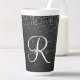 Caneca De Café Latte Monograma de brilho preto personalizado