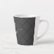 Uma caneca de café com estilo latte preto preto e branco personalizado, com um monograma em forma tênis, numa letra elegante e fofa de escrita caligráfica, com um padrão de rede sutil, com um aspecto moderno e otimizado e minimalista.
