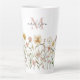 Caneca De Café Latte Monogramas Cores Aquáticas Flores Prateadas