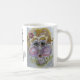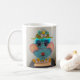 Mug usando minhas designs brancas. Um lado tem uma escultura de aço azul, e o outro lado tem um desenho. Ambos os lados usam rostos para alegria!!
