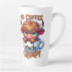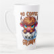 A funny and sarcastic colorful design showcases an adorable highland cow perched in an empty coffee cup. With a grumpy expression, big blue eyes, and brown fur, the cow adds a charming touch. The vibrant text reads, "No coffee much grumpy." This design is featured on a variety of products, making it a perfect gift for coffee enthusiasts.