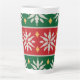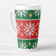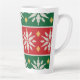 Scandinavian-inspired faux-knit pattern of snowflakes, diamonds, and festive stripes in red, green, white, and gold.