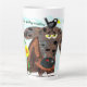 This latte mug is for laughs and fun, it's about a brown spotted cartoon dog who claims not to be bored on a warm summer day, instead the dog is getting creative. The dog is brown with black spots and has a large black nose it is summer time so the sun is shining brightly flowers are in bloom trees are green an there even is a tiny bird sitting on the dogs head.