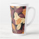 Uma simples ilustração das folhas em castanho-do-cacau, laranja e amarelo-claro contra fundo preto.