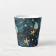 Uma caneca de café com um padrão azul elegante com estrelas-do-mar, representando o oceano.