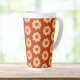 Caneca De Café Latte Padrão Floral Amarelo Dahlia em Vermelho