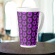 Encham-se com um café com café nesta caneca de grande porte, cerâmica, que apresenta a foto de enrolamento de uma flor roxa de Geranium em fundo preto e impressa em um padrão repetitivo. Um design floral adorável!
