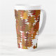 Camadas sutilmente sombreadas de recortes de pinheiros em verdes, vermelhos, laranjas e castanhos em um fundo branco