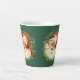Esta caneca de café tem um toque de nostalgia, com uma imagem retrorativa de Papais noeis com seu boné vermelho e branco estocado e barba branca esbujada. Ele veste um sorvete de sagrada com um morango vermelho. O retrato está cercado por uma coroa de agulhas de pinheiros sobre um fundo verde da floresta. A imagem é repetida em dois lados.