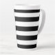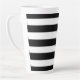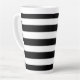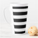 Design minimalista com listras pretas e brancas. Veja na minha loja toalhas de mesa, posicionamentos, portas copos e muito mais, incluindo uma mistura e combinação com bolinhas em preto e branco e preto e branco. A cor destas faixas pode ser facilmente alterada para a cor preferida. Se precisar de ajuda, ou se precisar de uma combinação de cores diferente, por favor, entre em contato comigo, e eu me ajudarei onde puder. Caneca para café latte.
