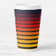 Design striped multicolorido inspirado por um pôr do sol. Design minimalista em azul escuro e diferentes tons de rosa, vermelho, laranja e amarelo.