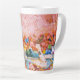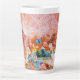 Everything is pink and warm tones from the background to the young lady hair, pink sky, pink tulips, stufftoys and etc