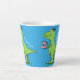 Nosso engraçado dinossauro de desenho animado verde é um "rex do chá".