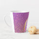 Unicórnio Rainbow Glitter Fantasy Magical Latte MugDesignada por uma brilhante e brilhante tela de fundo brilhante brilhando ao redor da caneca. A frente tem um unicórnio branco com bonito cabelo arco-íris e flores em cima de sua cabeça. Personalizado com o nome no script de caligrafia branca, com a inscrição vertical no lado direito do unicórnio. Faz uma ideia de presente adorável para a festa de aniversário de unicórnio de uma menina.