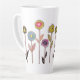 Whimsical flowers are presented, created in mixed media with various colorful flowers to brighten your favorite beverage.
