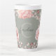 Caneca De Café Latte Wreath Rosa de Aquarela Personalizada | Sage Green