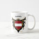 Design legal da crista com cores letãs da bandeira nacional. Substitua o texto "Latvia" com seu próprio slogan para criar um presente letão personalizado original do orgulho.