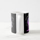 Um design único com uma xícara dupla cheia com um líquido roxo, com uma linha de líquido a derramar de um copo para o outro. Perfeito para qualquer fã de designs criativos.