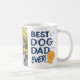 O Melhor Pai De Cachorro De Todos Os Aniversários Deu Mug. Uma caneca personalizada do seu melhor amigo. Celebre com esta design de tipografia medalhada e divertida para dizer Feliz Dia de os pais de forma única! Apresentando letras azuis ousadas e uma medalha de pata de cão ouro, esta caneca é a forma perfeita de mostrar apreço pelo incrível pai de cão em sua vida. Personalize-o com uma imagem de cão ou filhote para torná-la ainda mais significativa. Seja pelo Dia do Pai, seu aniversário, ou apenas porque, esta caneca com tema de cão é uma forma excelente de honrar seu amor e cuidado. Colocando trabalho de arte do Ana Garza/Kardz Studio. Se tiver alguma dúvida, por favor, sinta-se à vontade para me contactar através do Zazzle Chat.