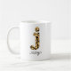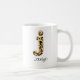 Personalize esta caneca de café personalizada de letra-leopardo minúscula "j" acrescentando um nome. O nome personalizado está em uma fonte de tipo manuscrito giramente.