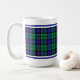 Mata de café com tartã de caça para Clan Leslie e suas sebes, incluindo Abernathy e Bartill. Padrão real de xadrez escocesa azul e verde brilhante de 1810, com preto, que e sotaque vermelho.