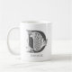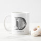 Caneca de café branca personalizável, com a letra D numa tipografia única de cor cinza escura. Adicione seu nome usando o recurso de personalização.