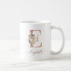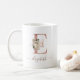 Esta elegante caneca de café apresenta um grande monograma da letra "E" em folha de ouro rosa falso, decorado com um buquê floral de marfim vintage aparado com folhagens em verde e dourado rosa. Personalize-a com o nome dela em escrita à mão em ouro rosa, com floreios no início e no final. Faz um presente perfeito para madrinhas! Veja nossa loja Ovenbird Designs para outras letras do alfabeto. (Para manter os floreios, substitua apenas as letras do nome.)