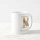 Uma caneca de café personalizada com uma falsa letra de ouro "R" monograma, com ilustrações decorativas de cor d'água floral e folhagem. Personalize-o facilmente com seu nome ou crie um presente único para seus entes queridos.
