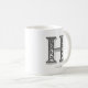 Caneca de café branca personalizável, com a letra H numa tipografia única de cor cinza escura. Adicione seu nome usando o recurso de personalização.