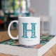 Caneca De Café Letra H Teal Monograma Nome Moderno