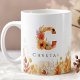 Folhas de aquarela elegantes enquadram o fundo dessa caneca enquanto a letra C é uma colagem de um elemento festivo de folhas laranja e amarelas, Personalize com um nome para torná-la exclusivamente sua.