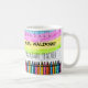 A caneca temerária da escola personalizada com o nome e a classe do professor, o nome e o título da faculdade, ou o nome da escola com habilitações escolares coloridas de ambos os lados. Teste esta design inserindo suas informações para ver como ela está! Se precisar redimensionar o texto, clique em 'personalizar' para inserir a 'ferramenta design'.