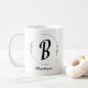Na moda e caneca minimalista com a letra B em preto elegante, moldada com um sutil motivo floral. Presente perfeito para Barbara ou qualquer pessoa cujo nome comece com a letra B. A personalização lhe permite adicionar qualquer nome, fazer-o um presente único e ponderado para aniversários, dias de nome, Dia das Mães, Dia do Namorados ou outras ocasiões. O design ajustado eterno qualquer estilo doméstico - do moderno ao rústico.