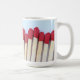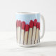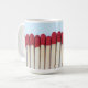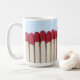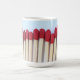 Uma caneca com uma foto de fileira de fósforos enrolados.