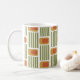 Esta caneca tem um design moderno século médio feito de cinco linhas verdes e um retângulo dourado arredondado com um retângulo laranja arredondado repetido na design.
