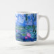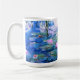 Uma caneca rosa monet, uma caneca clássica, de 15 oz, com lindos lírios de água rosa flutuando em um lago azul calmo com almofadas de lírios. Um presente de Monet excelente para fãs do impressionismo e da arte francesa. Inimpressionismo sereno na natureza com lindas flores e paisagem de lagoas cênicas.