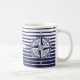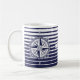 Um design náutico com um rosa de compasso ornamentado em listras azuis e brancas e uma etiqueta com texto customizável.