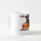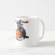Whimsical raccoon in a wizard hat with a pumpkin, labeled "Little Forest Wizard." A charming, magical design.