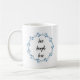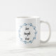 Live Laugh Love Blue floral wreath em uma caneca branca.