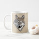Um esboço muito detalhado de um lobo em ambos os lados desta caneca.