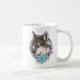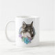 Caneca De Café Lobo-Cinza e Flores Ilustrados