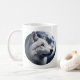 Abraçar a natureza com um lobo e uma caneca de café da lua — perfeita para amantes da natureza, fãs da vida selvagem, e aqueles que amam um toque de mistério.