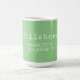 caneca de café na moda com Hillsboro Oregon, longitude e coordenadas de latitude em fonte de máquina de escrever em fundo verde claro.