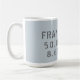 Caneca de café com coordenadas de latitude e longitude de Frankfurt, Alemanha, em caracteres urbanos modernos