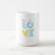 The word "LOVE" is creatively illustrated with playful dogs interacting with each letter on a dark background. The letters "L," "O," "V," and "E" are in light blue and yellow, juxtaposed with the energetic poses of the white dogs.